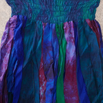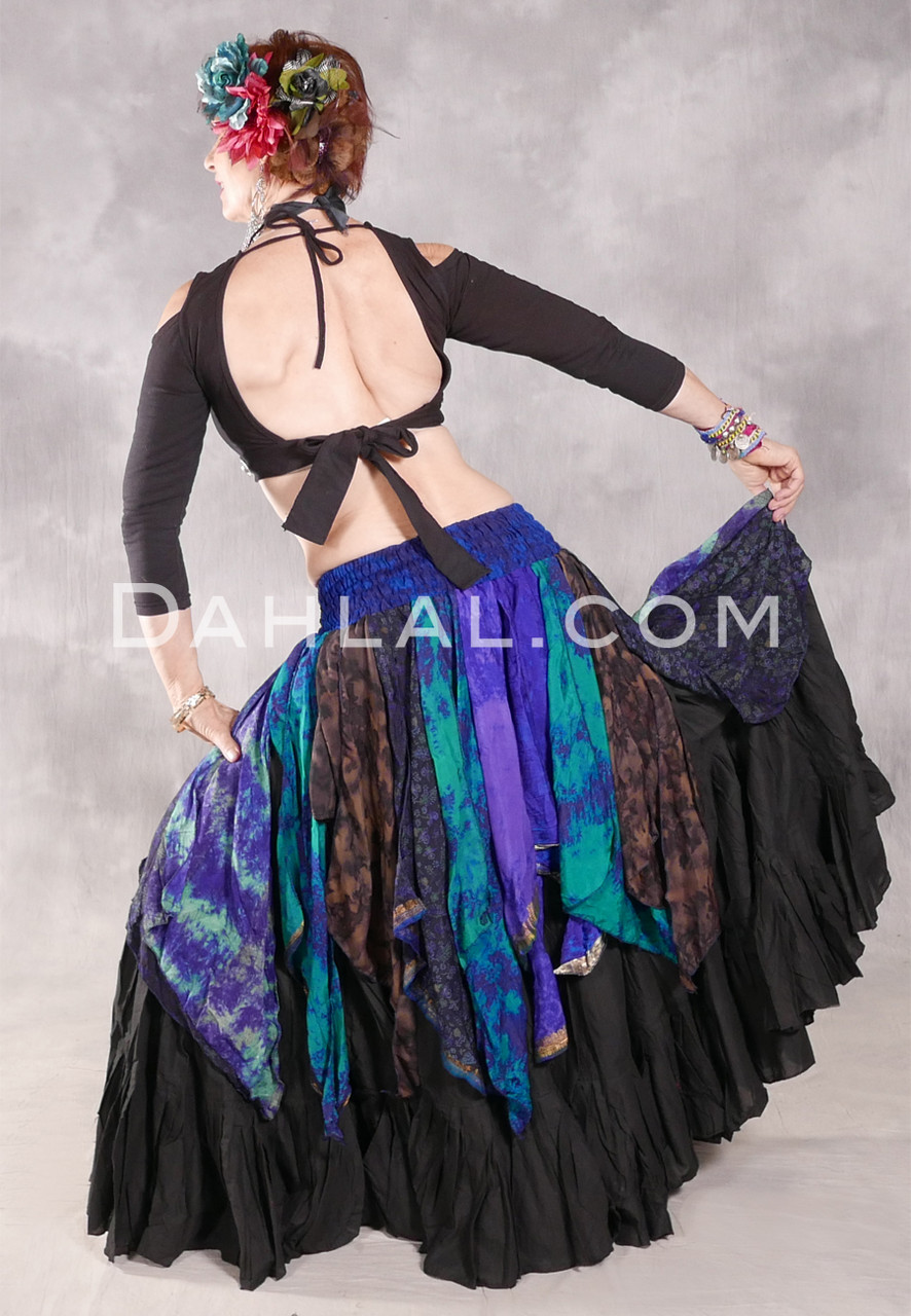 Our tie-dyed handkerchief silk skirt works perfectly as a layering piece for Renaissance Fairs or fairy or belly dance fusion outfits.