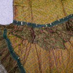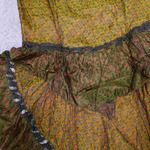 Each of these beautiful vintage sari wrap skirts are one-of-a-kind and feature multiple snap closures at the right front, making them adjustable to fit most sizes.