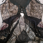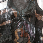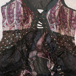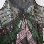 Large: Across bust: 36" (with lacing closed) Waist: 32" Length from back neck: 47"
