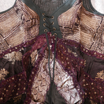 Small: Across bust: 32" (with lacing closed) Waist: 26" Length from back neck: 47"