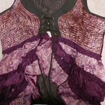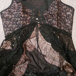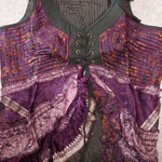 Embroidered silk brocade with ruffles and lacing detail combine for an eye-catching tail vest that is so versatile you'll want to wear it everywhere!