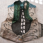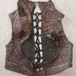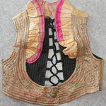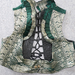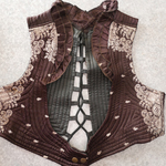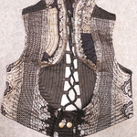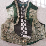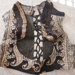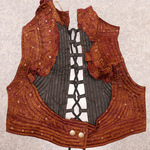 I love this vest- shiny, sexy, flattering. Beautiful gilded floral pattern. The laced back adjusts perfectly. Very well made and goes with everything. Great customer service to help me match vest to skirts!